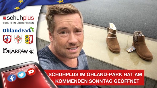 schuhplus im Ohland-Park hat am kommenden Sonntag geöffnet 25. Sep., 2019 11:50 02:13 Keine Chance für Ketchup, Senf, Cola oder Rotwein: Schuhe von BearPaw mit „Never Wet“ Anti-Schmutz und Anti-Wasser Imprägnierung – ab Herbst bei schuhplus 11. März, 2019 13:35 04:59 Damenschuhe in Übergrößen von BEARPAW: Mega coole Schuhe mit Schaffell und Wasserschutz-Technologie ab Herbst bei schuhplus 22. Feb., 2019 13:13 01:49
