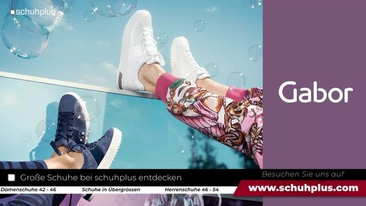 schuhplus Teleshop am 20.05. – Pumps von Gabor in Übergrößen bei schuhplus 20. Mai, 2021 08:17 07:00 Schicke Füße mit der Gabor Übergröße – erhältlich bei schuhplus 30. Apr., 2021 11:11 00:14 schuhplus Teleshop am 31.03. – Sneaker XL von Gabor für Damen bei schuhplus 31. März, 2021 08:22 07:24 schuhplus Teleshop am 18.03. – Pumps von Gabor in Übergrößen bei schuhplus 19. März, 2021 09:54 12:31