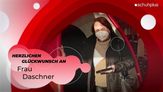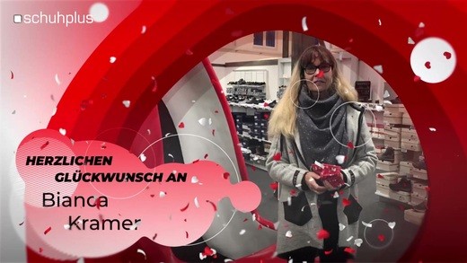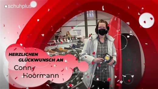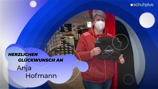 Glückwunsch von schuhplus Kaltenkirchen an Frau Daschner zum gewonnenen Handy-Ladegerät von Gore Tex