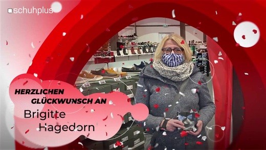 Glückwunsch von schuhplus Saterland an Brigitte Hagedorn zum gewonnenen Handy-Ladegerät von Gore Tex