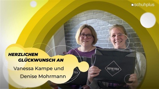 Glückwunsch von schuhplus an Vanessa Kampe und Denise Mohrmann zur Kühltasche von GORE TEX