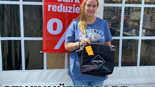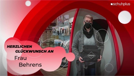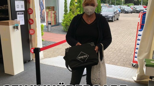 Glückwunsch von schuhplus Kaltenkirchen an Frau Behrens zur Kühltasche von Gore Tex