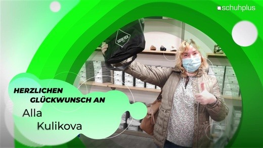 Glückwunsch von schuhplus in Leipzig zur gewonnenen Kühltasche von Gore Tex an Alla Kulikova