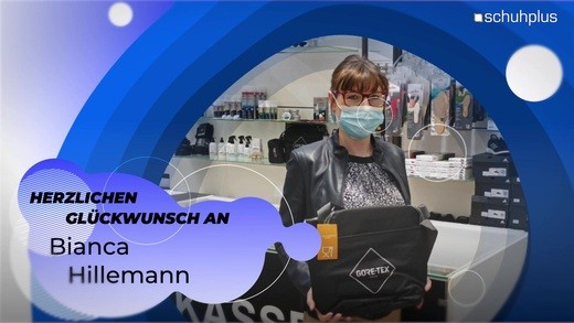 Glückwunsch von schuhplus Dresden an Bianca Hillemann zur gewonnenen Kühltasche von Gore Tex