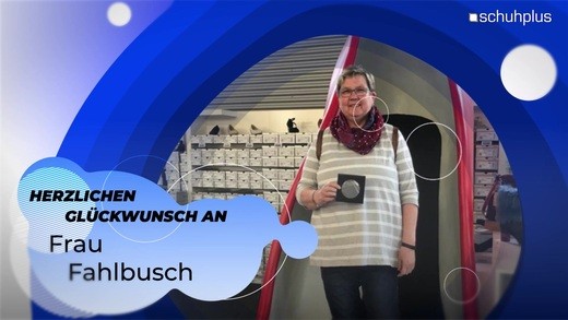 Glückwunsch von schuhplus Kaltenkirchen an Frau Daschner zum gewonnenen Handy-Ladegerät von Gore Tex