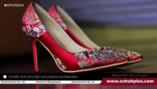 Pumps Gr 43 in bester Qualität und ansprechender Optik bei schuhplus 22. Dez., 2021 07:30 00:14 Pumps für Damen in XL – Absatzschuhe in Übergrößen beim Spezialisten schuhplus 13. Okt., 2021 10:21 00:14 Blog – High Heels – 28-09 – schuhplus – Schuhe in Übergrößen-.mp4 28. Sep., 2021 10:51 00:14 Pumps in Übergrößen bei schuhplus – von elegant bis alltagstauglich 23. Aug., 2021 08:42 00:14 High Heels Größe 43 finden: bei schuhplus kein Problem 17. Juni, 2021 15:26 00:14 Faszinierende Extravaganz: High Heels in Übergrößen bei schuhplus 14. Mai, 2021 07:18 00:14 Sommer-schick gekleidet: Ballerina von Remonte im schuhplus Teleshop am 04.05. 04. Mai, 2021 08:08 07:56 Große Füße schick gekleidet: High Heels von Giaro heute – 03.05. – im schuhplus Teleshop 03. Mai, 2021 09:11 09:01 High Heels in Übergröße: Große Auswahl an schicken Modellen bei schuhplus – Schuhe in Übergrößen 18. Sep., 2020 11:46 00:19