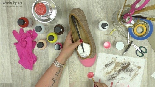 Einen langweiligen Keilabsatz verschönern mit der schuhplus Bastelfee