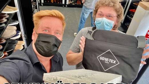 schuhplus in Dörverden gratuliert Frau Fahlbusch zum Handy-Ladepad von Gore Tex Brand