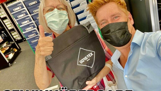 Glückwunsch von schuhplus Dörverden an Sybille Kraetzig zur Kühltasche von Gore Tex