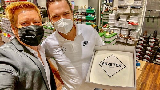 Glückwünsche von Daniel Strukamp der Firma GORE-TEX zur schuhplus-Eröffnung in Nürnberg
