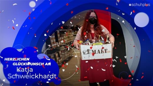 schuhplus in Kaltenkirchen übergibt gewonnenes Silvesterpaket von Malt24 an Katja Schweickhardt