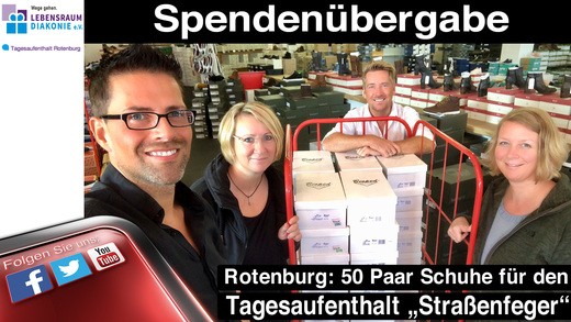 Spendenübergabe bei schuhplus: 100 Paar Schuhe für die Bremer Suppenengel 27. Sep., 2018 17:23 02:54 Spendenübergabe bei schuhplus: 50 Paar Schuhe für den Tagesaufenthalt Rotenburg „Straßenfeger“ der Lebensraum Diakonie e. V. 05. Sep., 2018 17:01 03:43 Endspurt! Noch 200 Paar Schuhe für caritative Zwecke zu verschenken 30. Aug., 2018 12:53 05:02 Spendenübergabe: schuhplus schenkt 70 Paar Schuhe dem Hilfe und Tat e.V. 28. Aug., 2018 12:55 02:36