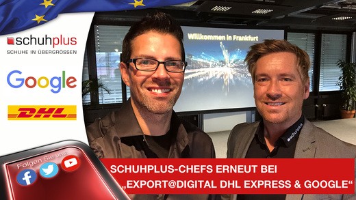 Schuhplus-Chefs Kay Zimmer und Georg Mahn erneut bei „Export@Digital DHL Express & Google“ 17. Okt., 2019 15:53 02:24 Schuhplus-Chefs Kay Zimmer und Georg Mahn in der Königlichen Reithalle in Hannover 02. Okt., 2019 17:48 02:00