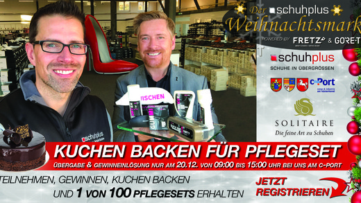 Schuhplus im Saterland tauscht Kuchen gegen Schuh-Pflegesets beim Weihnachtsmarkt