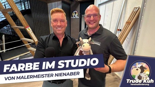 Heute ist Trude wieder unterwegs, und zwar in einer ganz besonderen Mission. Sie sucht kreative Wandbeläge für ihr neues TV-Studio, das bald als ein zentraler Punkt für viele spannende Projekte und kreative Gewinnspiele dienen soll. Wie so oft lässt sich „Trude Kuh“ Vereinsförderung von neuen Ideen mitreißen und ist sofort begeistert von der Möglichkeit, das Studio gemeinsam mit Dennis Nienaber, dem Malermeister und Geschäftsführer des Malermeisterbetriebs Nienaber aus Friesoythe, zu gestalten. Trude weiß, wie wichtig es ist, dass ihre Projekte nicht nur funktional sind, sondern auch optisch ansprechend und inspirierend wirken. Deshalb hat sie sich bewusst für die Zusammenarbeit mit einem Meisterbetrieb entschieden, der nicht nur handwerkliches Können, sondern auch kreative Lösungen bietet, die genau auf ihre Bedürfnisse zugeschnitten sind. Während sie mit Dennis Nienaber die verschiedenen Wandbeläge und Gestaltungsmöglichkeiten durchgeht, wächst ihre Vorfreude auf das, was bald in diesem Räumen entstehen wird. Trude lässt sich von den kreativen Ideen des Malermeisters begeistern und ist gespannt, wie die Wandgestaltung das Studio zu einem Ort der Inspiration und des Schaffens machen wird.